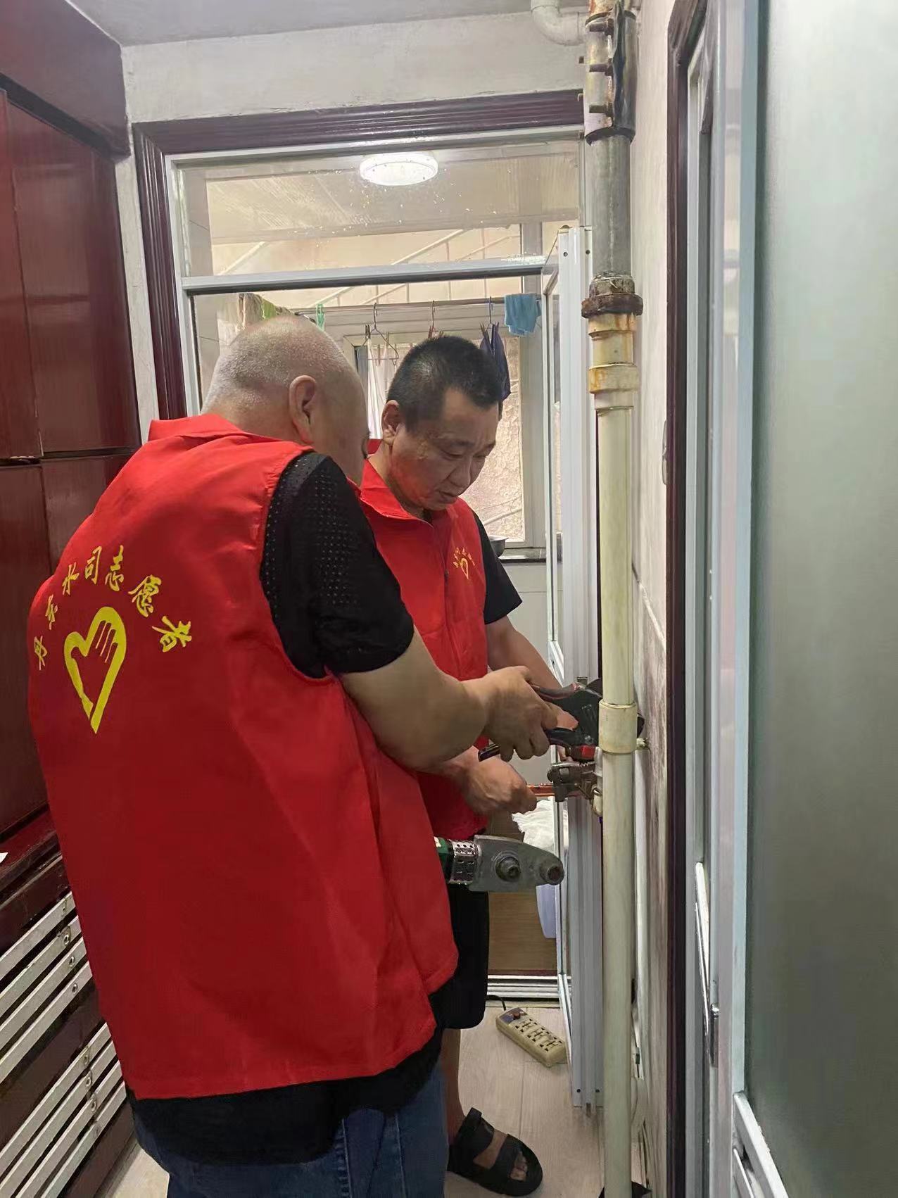 同日,元寶處黨支部組織黨員志愿者來(lái)到砂輪廠小區(qū)為社區(qū)居民供水設(shè)施進(jìn)行義務(wù)維修。